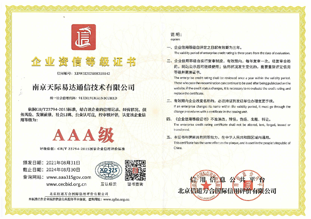 企业资信等级AAA级证书